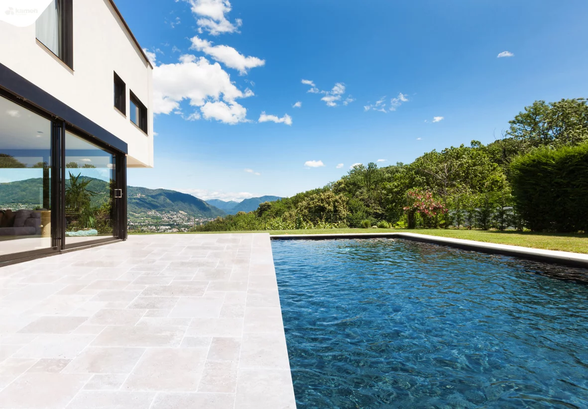 Kamienna mozaika z trawertynu ma powierzchniowe wykończenie Antyk. Piękny a ponadczasowy kamień jasnobrązowy trawertyn jest przyjemny w dotyku. Trawertyn ma ponadczasową piękność a swoim neutralnym kolorem bardzo dobrze się kombinuje z innymi kolorami zarówno na zewnątrz, jak i we wnętrzu. Odpowiedni jako kamienne okładziny i płytki kamienne.