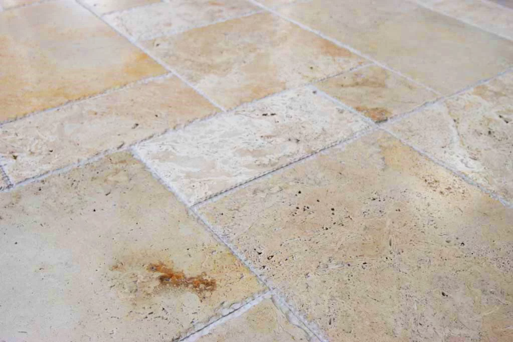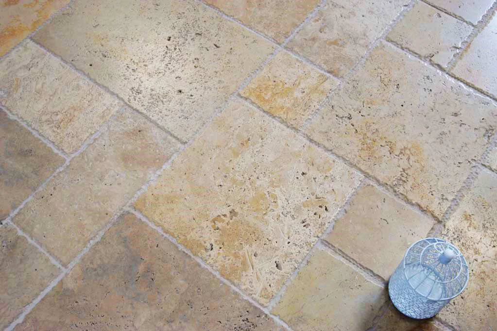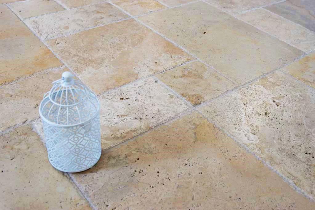 Naturalny sformatowany kamień Trawertyn ma wykończenie Antyk służy jako kostka tarasowa, około basenu, płytki łazienkowe, nawierzchni wewnętrznych i zewnętrznych. W pięknym kolorze cappuccino.