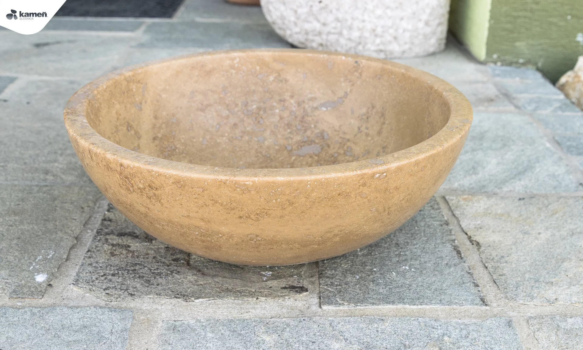 Piękna kamienna umywalka z trawertynu to oryginalny dodatek do każdej łazienki. Dzięki brązowej barwie doda wyjątkowości i elegancji każdej łazience. Kamienna umywalka w brązowym kolorze to zdecydowanie bardzo elegancki i zamierzony dodatek zwłaszcza do wnętrza – łazienki. Polerowane wykończenie gwarantuje wygodne użytkowanie i czyszczenie umywalki. W połączeniu z zielonymi sukulentami odznaczy się jego wyjątkowość i blask.